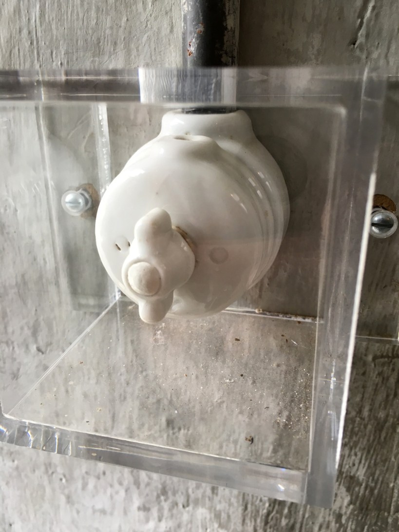Des interrupteurs d’éclairage vieille époque, en porcelaine! On tourne le bouton vers la droite pour allumer la lumière. Il y en avait encore dans quelques-uns de mes AirBnB européens! / Old-school light switches, made from porcelain! You turn the knob to the right to turn the light on. I’ve actually had a few of these in some of my European AirBnBs!
