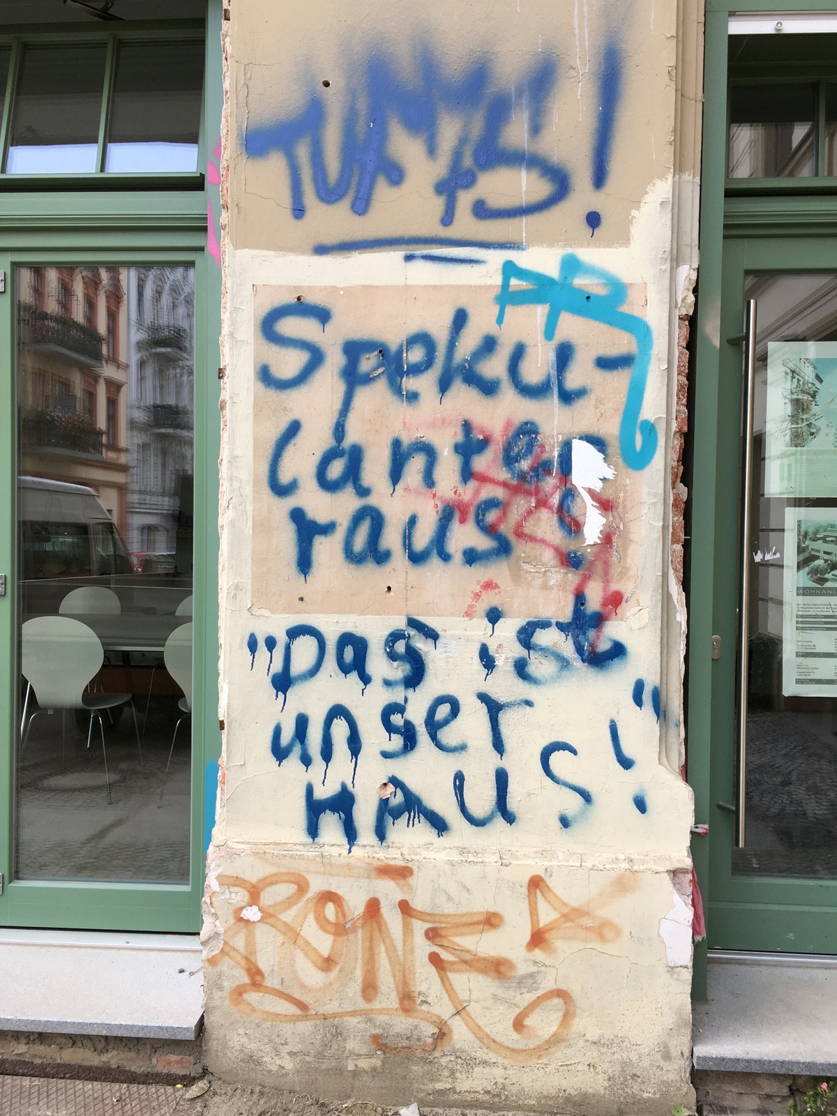 « Dehors les spéculateurs! Ici c’est *notre* maison! » / « Speculators out! This is *our* house! »