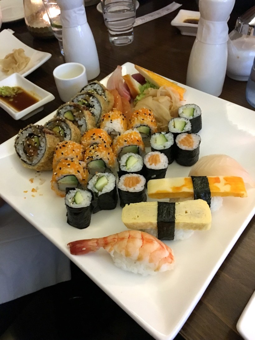 Le soir venu, ce fut sushi time! Avec Maria et une autre amie. / Now in the evening, it’s sushi time! I was with my friend Maria and another friend.