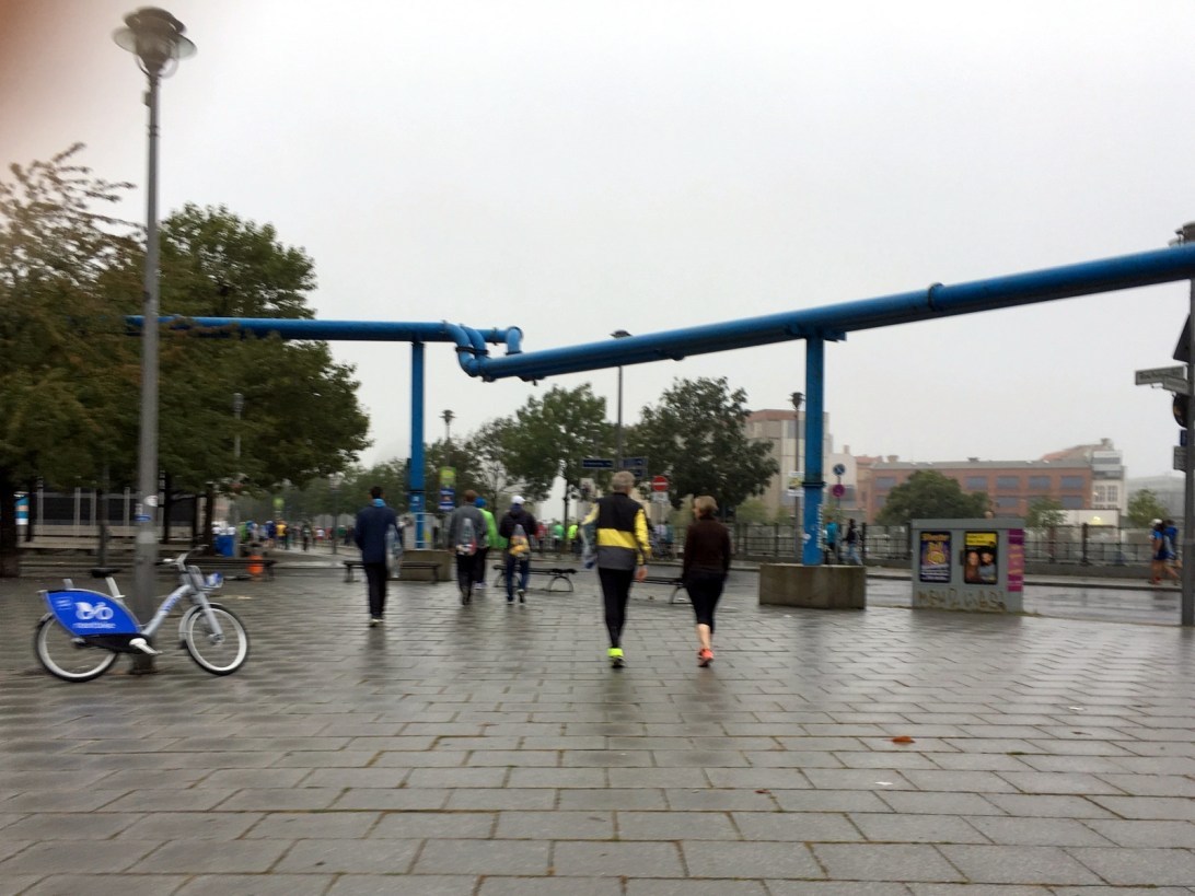 Je croise plusieurs personnes qui se rendent vers une des entrées. / I see several people walking towards one of the entrances/checkpoints…
