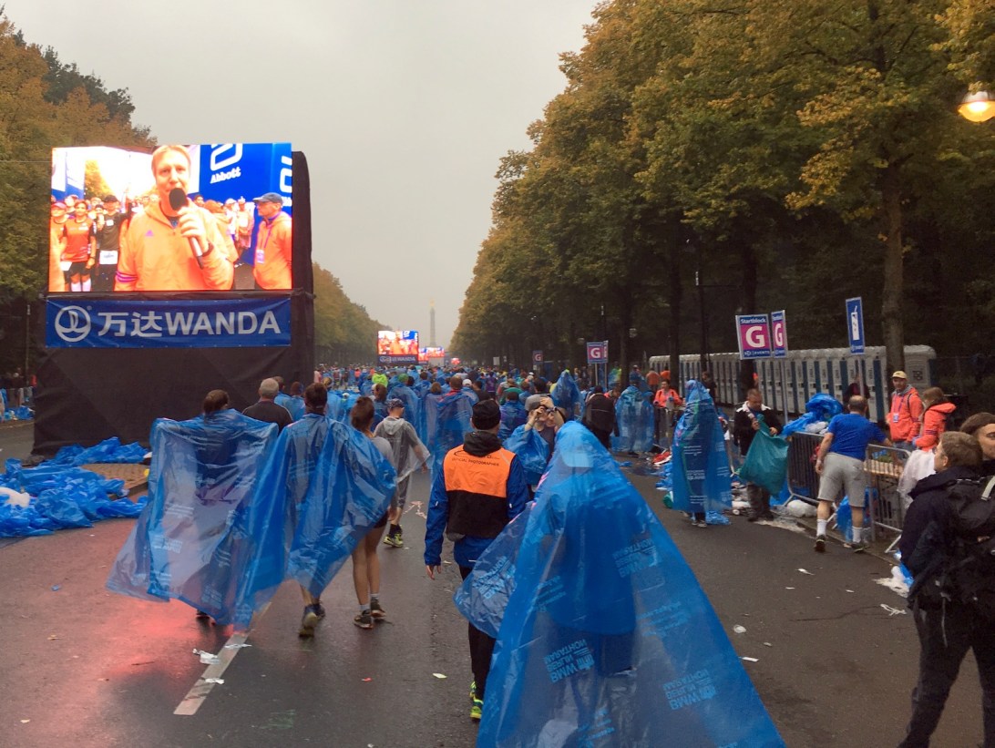 On approche de la section du départ. Vu que c’est mon premier marathon, je pars avec les recrues, en tout dernier. / Getting closer to the starting line. It’s my first marathon, so I’m among all the first-timers, at the very end of the line.