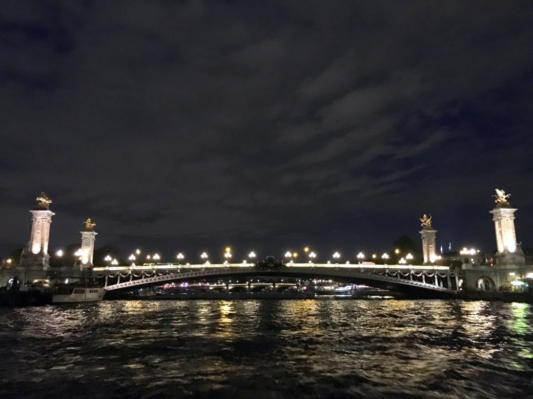 Nous dépassons la cathédrale Notre-Dame-de-Paris, puis on fait demi-tour. / We go past the Notre-Dame-de-Paris cathedral, then we go back.