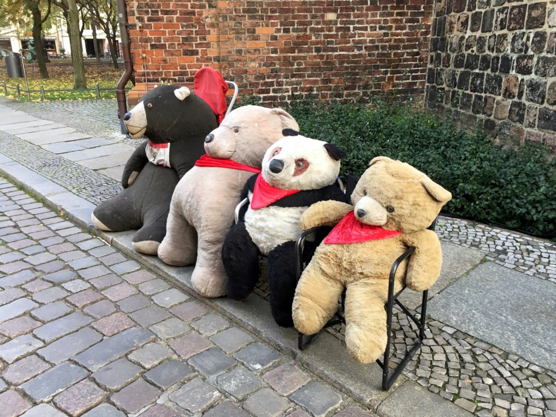 On avait des amis qui m’attendaient dehors. Des gros amis en plus! Ce sont des chaises de taille normale… / I had friends waiting outside for me. Big guys, too! Those chairs are regular size…