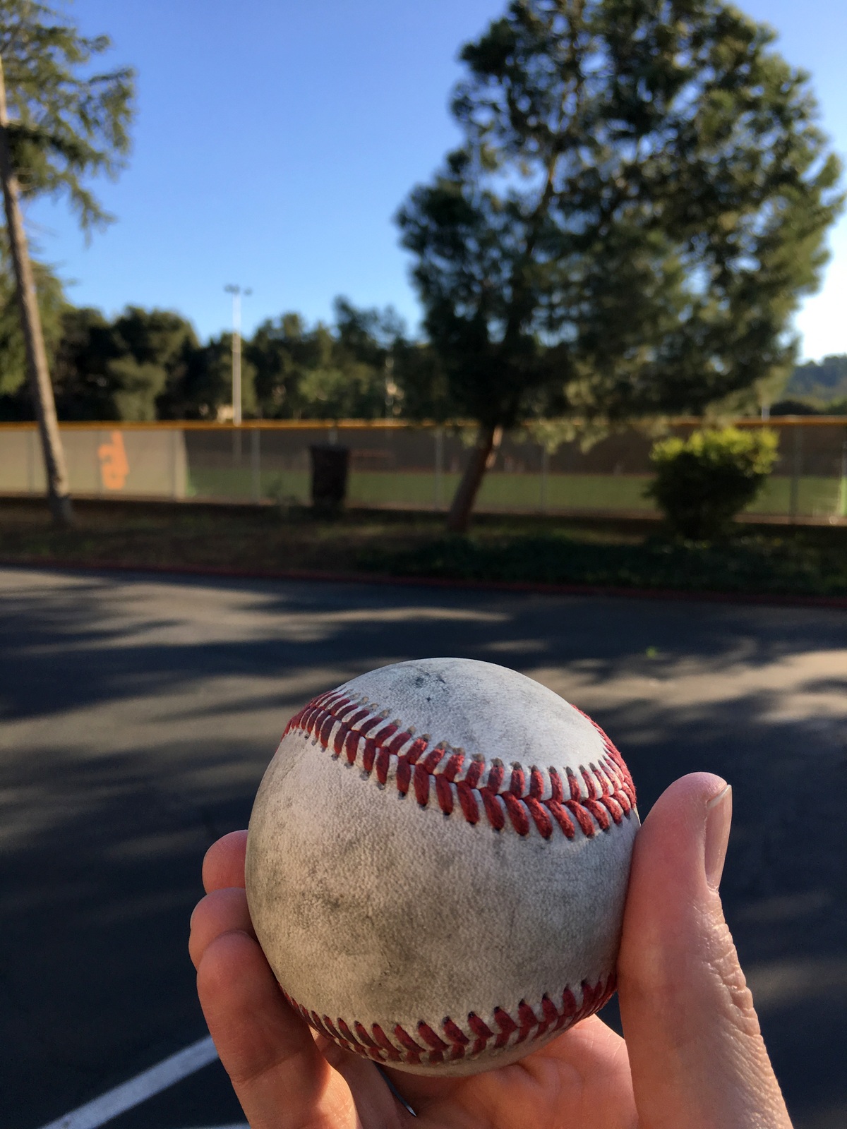 J’entends un bruit familier (le bâton qui « connecte » avec la balle. Coup de circuit, et souvenir pour moi! / Then I hear a familiar sound — the bat really « connecting » with the ball. Home run, and a souvenir for me!