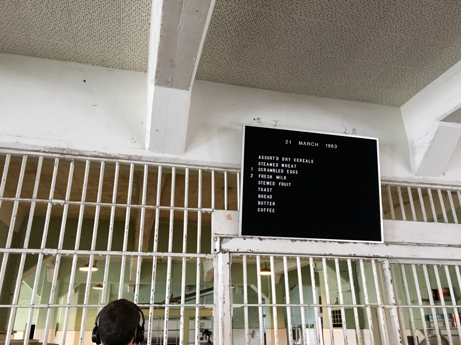 La cafétéria. Semblerait que tous les efforts étaient mis en place pour que la nourriture soit excellente — ça gardait les prisonniers de bonne humeur (et les rendait moins enclins à faire du trouble). / The cafeteria. Apparently every effort was made to have excellent food, so that the prisoners would be in a better mood (and less likely to cause trouble).
