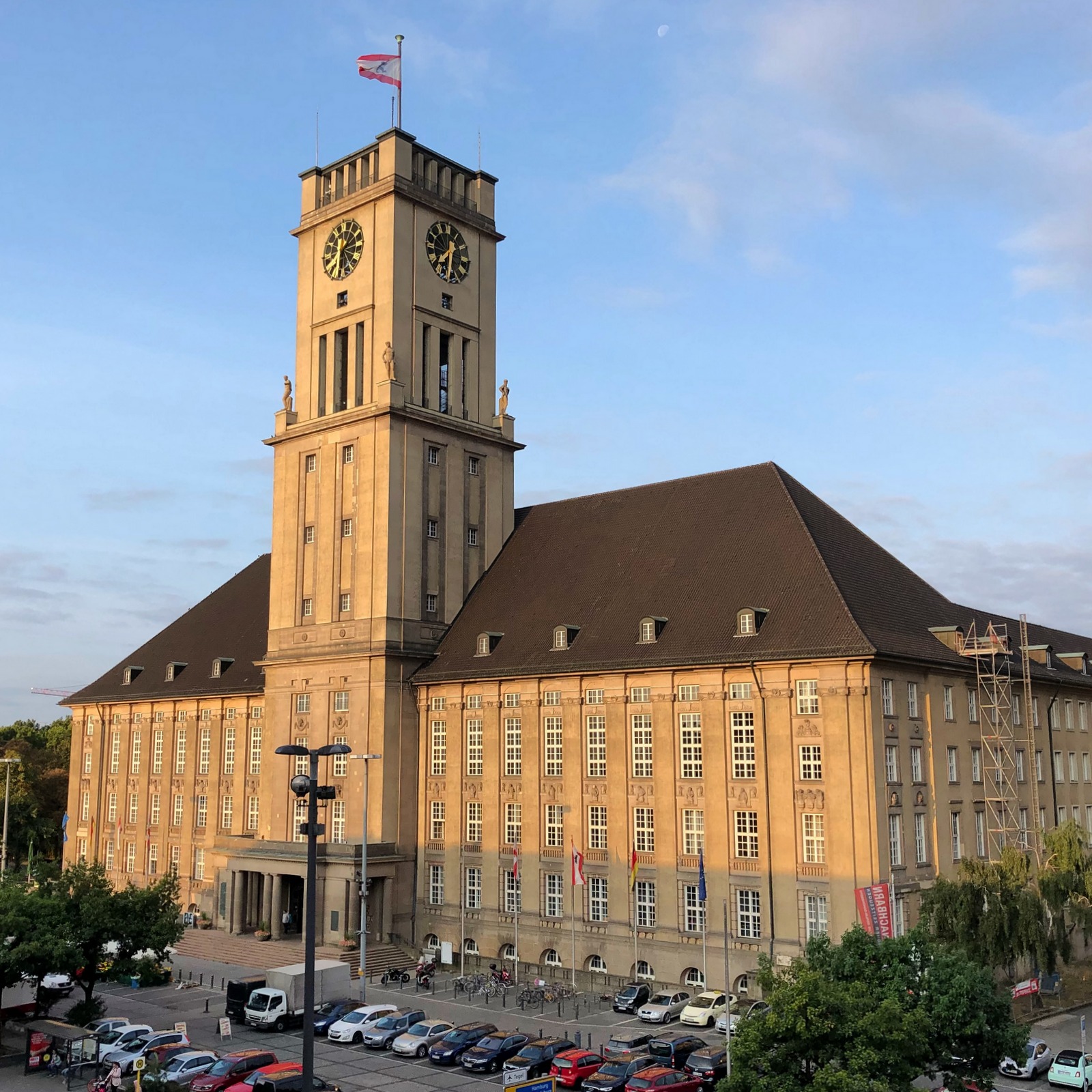 Vue de la fenêtre de mon AirBnB, le Rathaus (hôtel de ville) du quartier Schöneberg. / The view from my AirBnB — Rathaus (City Hall) Schöneberg.