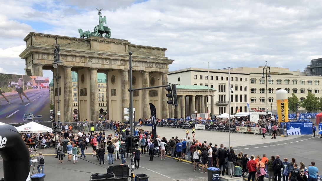 Porte de Brandebourg, où se termine le marathon. Elle commence juste à côté. / The Brandenburg Gate, where the marathon ends. It starts right next to it..