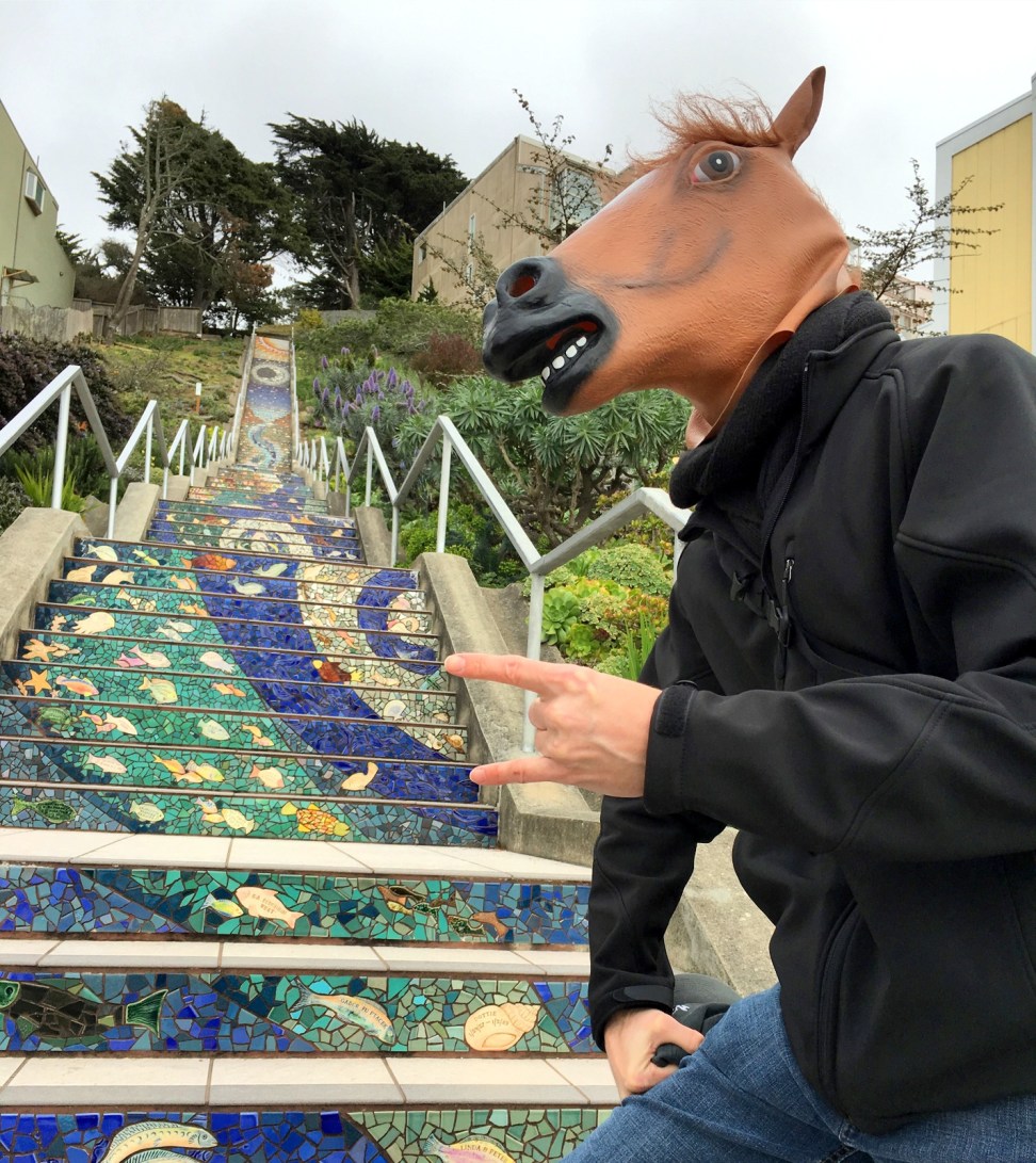 Captaine Horsehead dit, « n’oubliez jamais votre pile de secours lorsque vous voyagez, les enfants! ». / Captain Horsehead says, « Always bring a portable charger when you’re traveling, kids! »