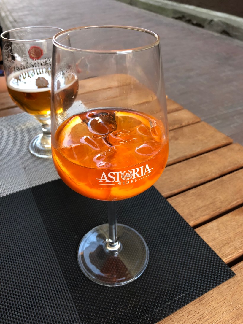 Je voyais des tonnes de personnes buvant ceci. Une gentille demoiselle me l’a même fait goûter! Aperol Spritz, très bon! / I saw a ton of people drinking this… A nice lady even let me have a taste of hers! Aperol Spritz. Very nice!