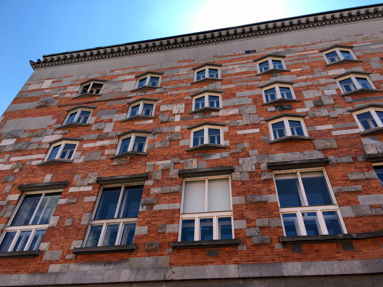Encore la Bibliothèque nationale. Regardez les fenêtres… on dirait des livres ouverts — et c’est voulu! / Back at the National Library. See those windows? They look like open books — on purpose!