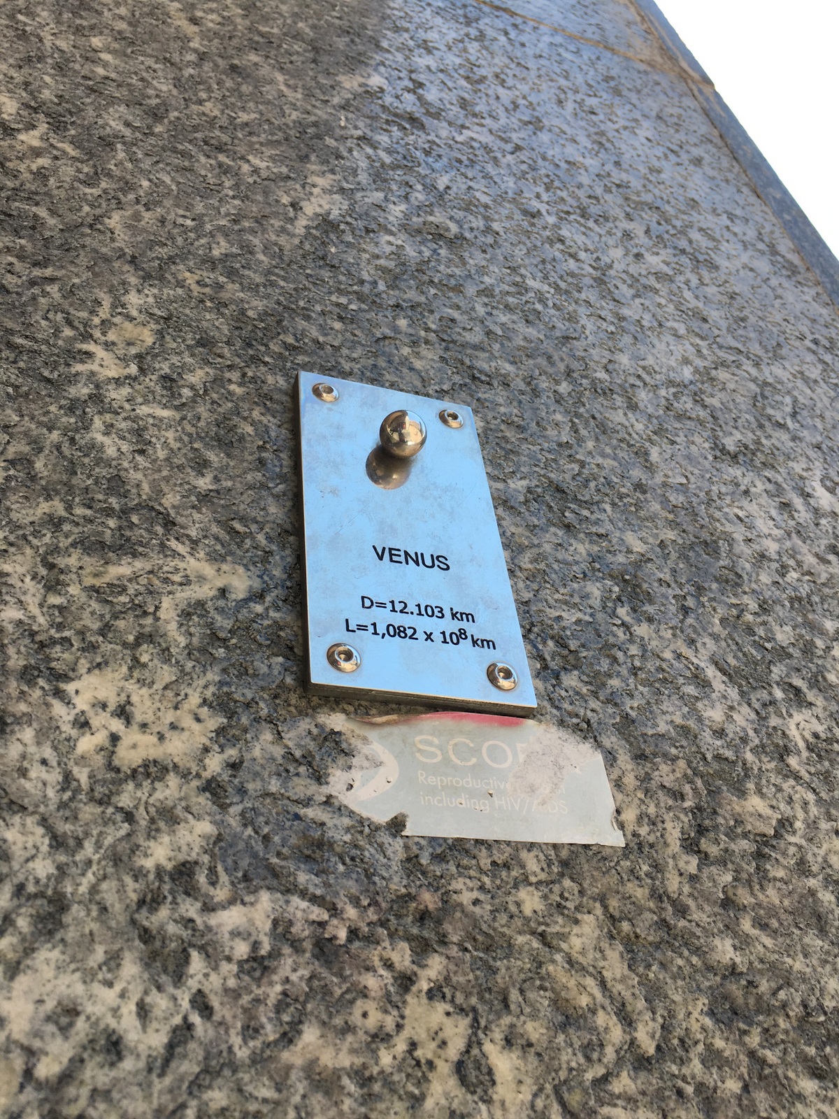 Par exemple, la Terre est à 225 m du « soleil », tandis que Pluton est à 9 kilomètres de distance! / For example, « Earth » is 225 meters from the sun, and Pluto is 9 km away!