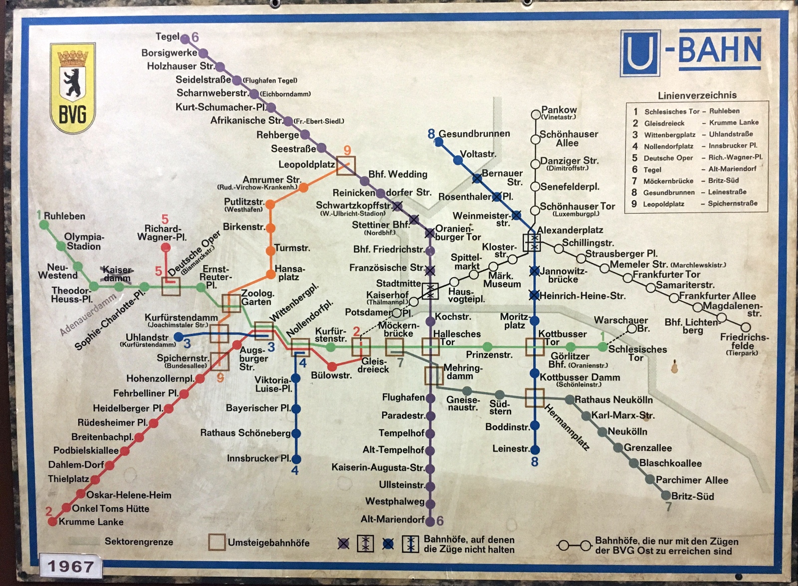 Et de 1967. Le Mur était construit, et certains trains partant de l’Ouest ne s’arrêtaient pas à l’Est. / And one from 1967. The Wall was now up, and trains leaving from the West didn’t stop in the East.