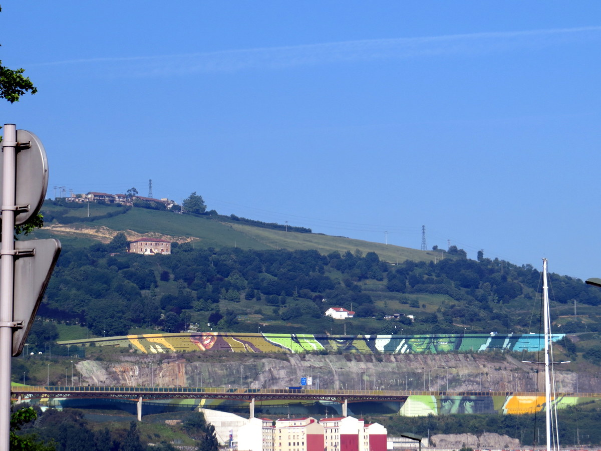 Je marche un peu le long de la rivière. De l’autre côté, des grandes murales à côté de la route. / I’m walking along the river now. On the other side, some big murals next to the road.